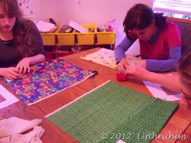 So what did it look like in reality? We used it more like a co-op or how I imagine it might work in a co-op. On Day 1 we started by watching the first several classes (4 maybe?) and then we spent the next couple of days reading the text for those classes and reading ahead for the next couple of classes. We also completed any assignments. We fell into a pattern of watching 2-4 classes and then taking 2-4 days to work through the material. This method allowed us to be together for the DVD instruction but gave us more flexibility for scheduling sewing time. Sometimes the girls would work at the same time to keep each other company and offer encouragement and support. We have averaged completing 5 classes per week working 3-5 days per week.